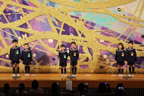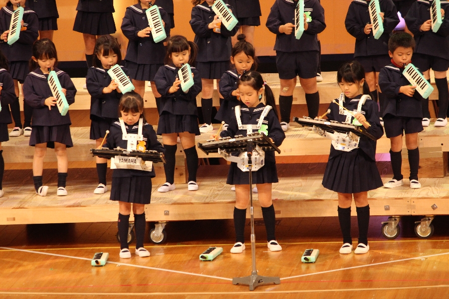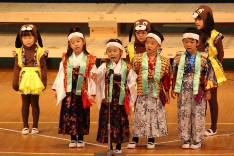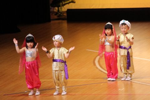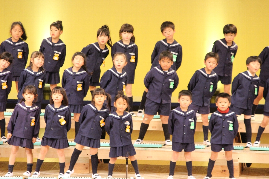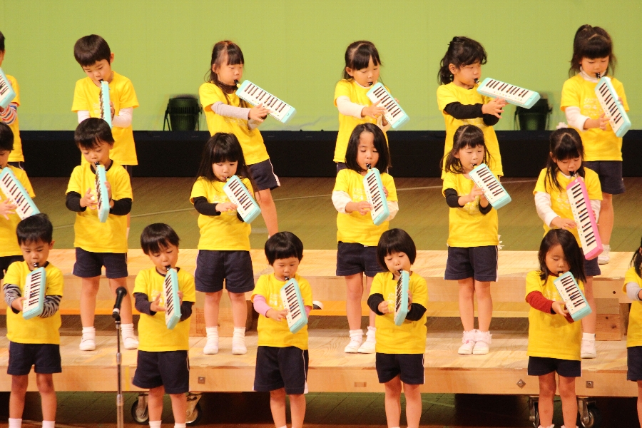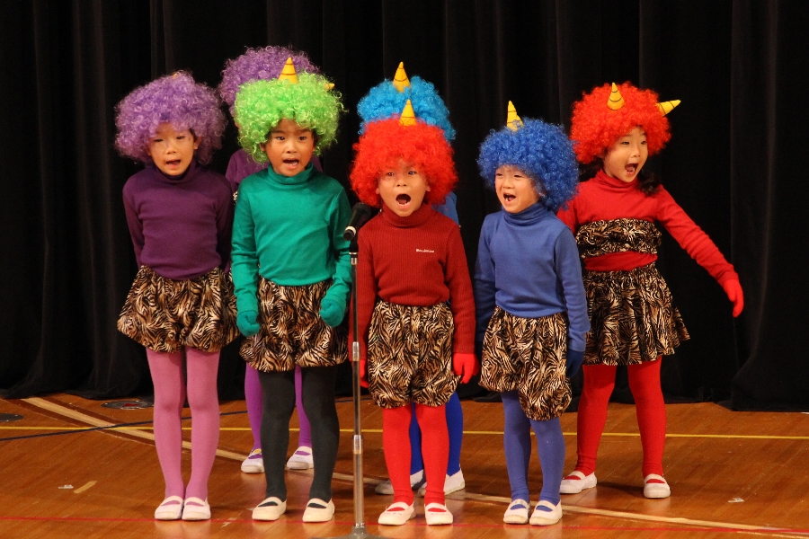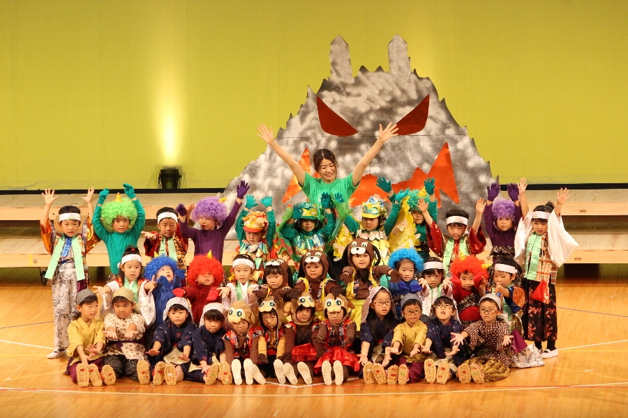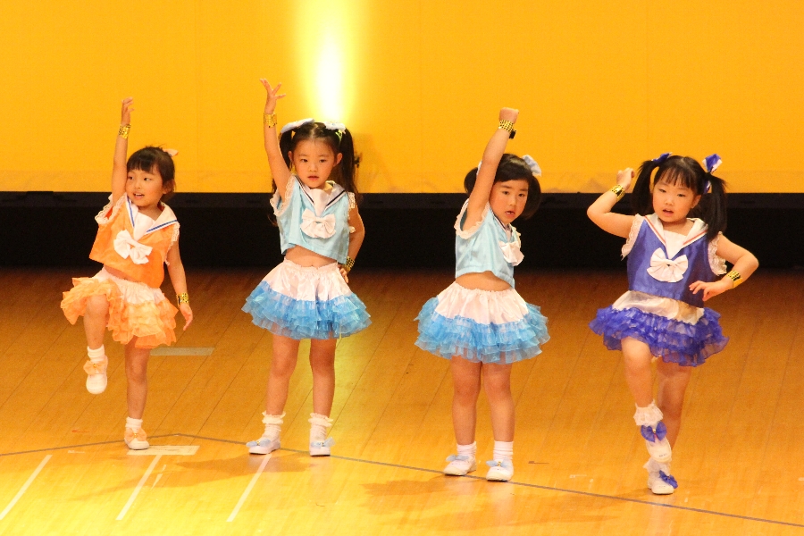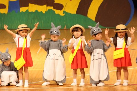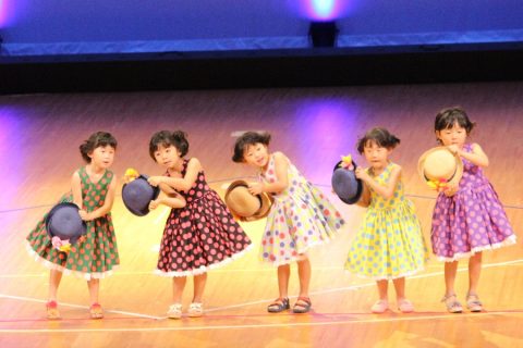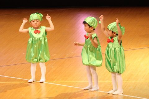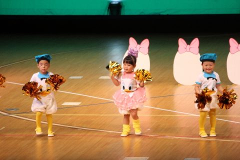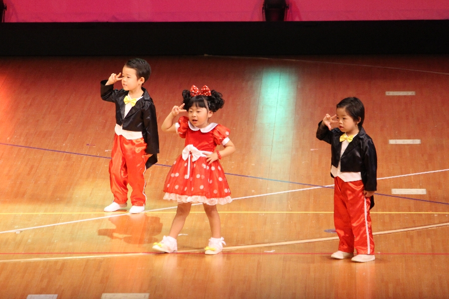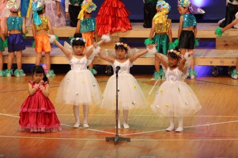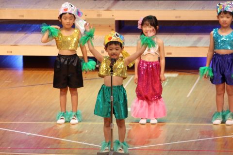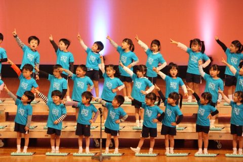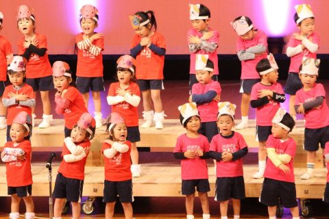 年少さんは入園して初めての大舞台でしたが、堂々とした姿で歌やダンスを披露してくれました。年中さんは昨年よりも難しい歌や振り付けに挑戦し、男の子は側転をカッコよくきめていました!表情もとても豊かで、見ているお客さんを楽しませてくれました。
