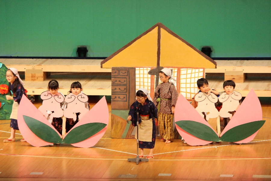 年長さんは初めての劇にチャレンジし、自分たちで表現する楽しさを感じながらそれぞれの役を演じきりました。時には笑いをとってお客さんを楽しませる場面もあって、とても頼もしく感じられました!発表会の最後を飾った歌も、全員の気持ちが一つとなり素晴らしかったです。